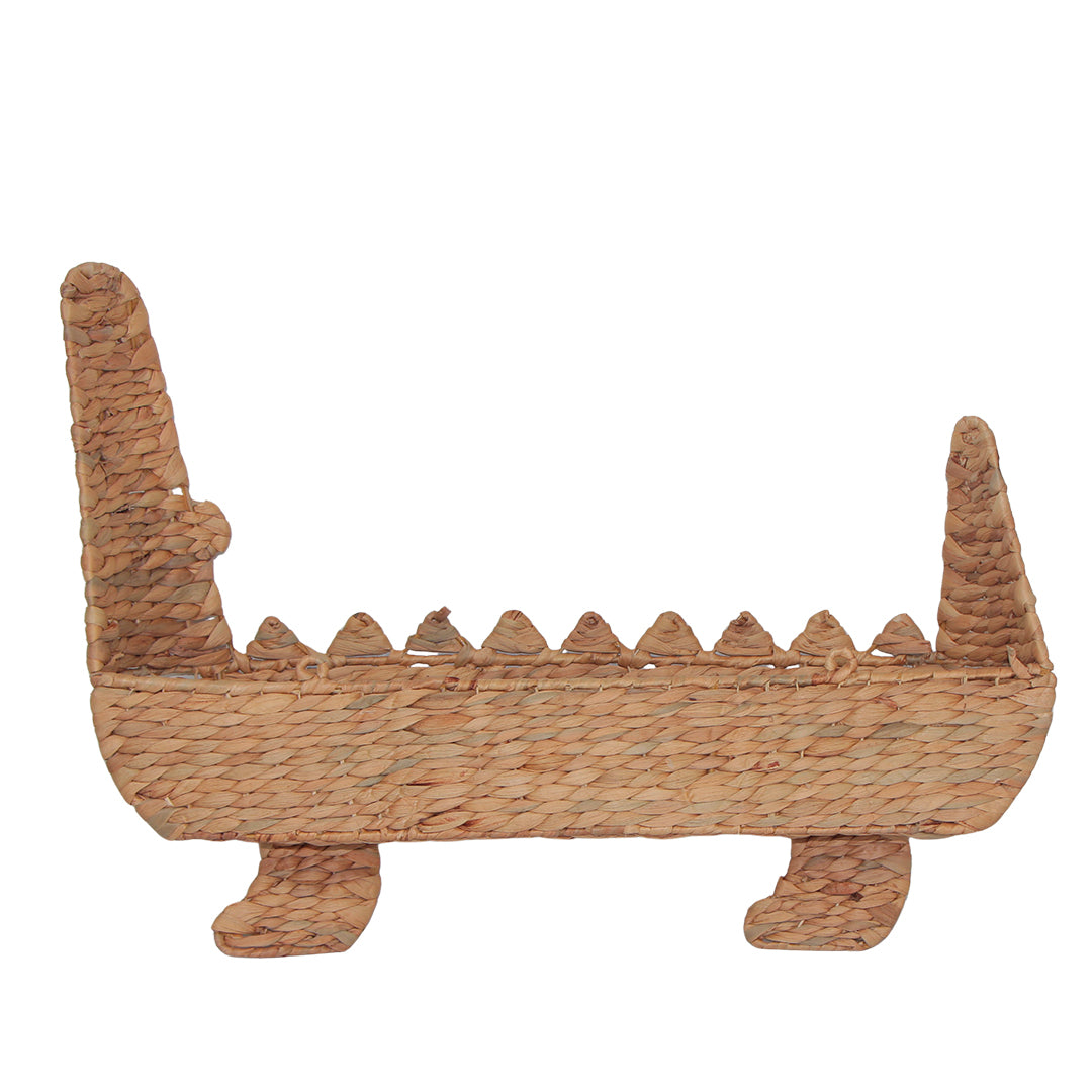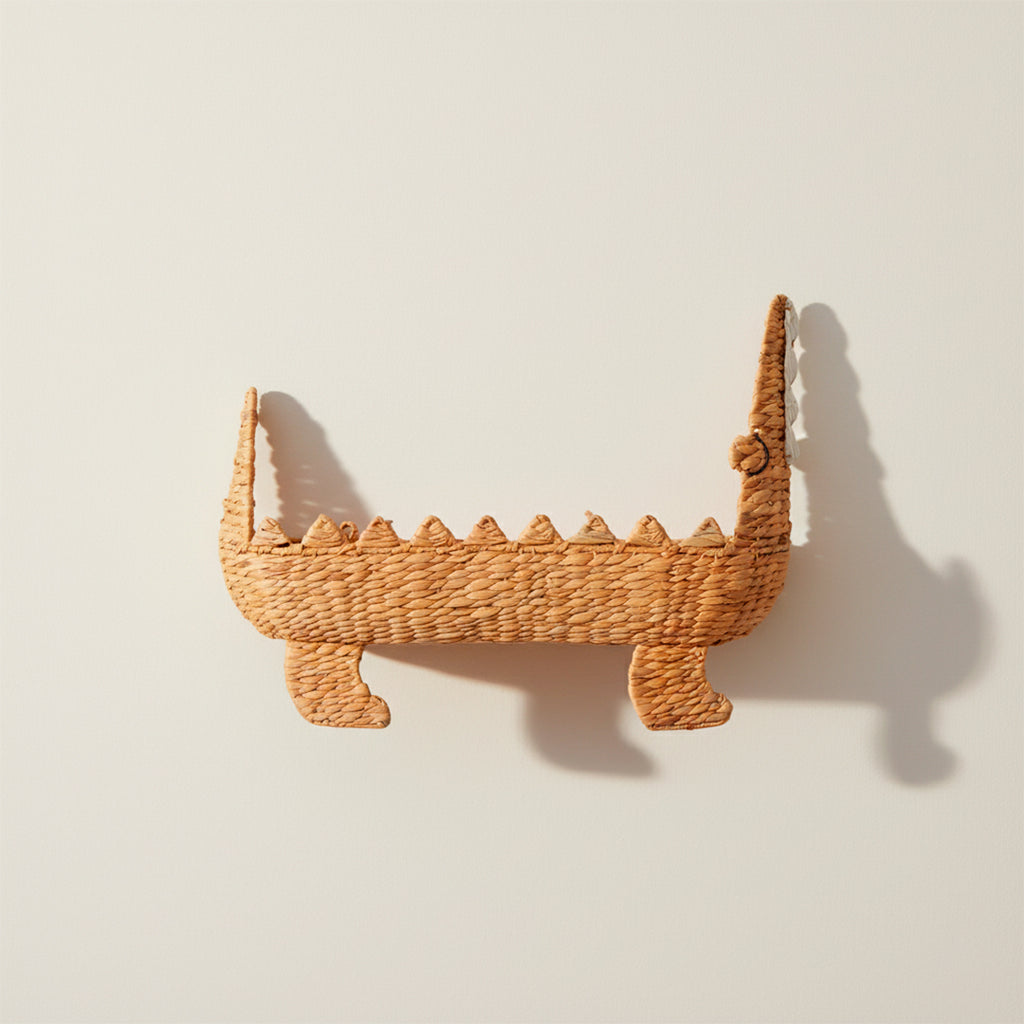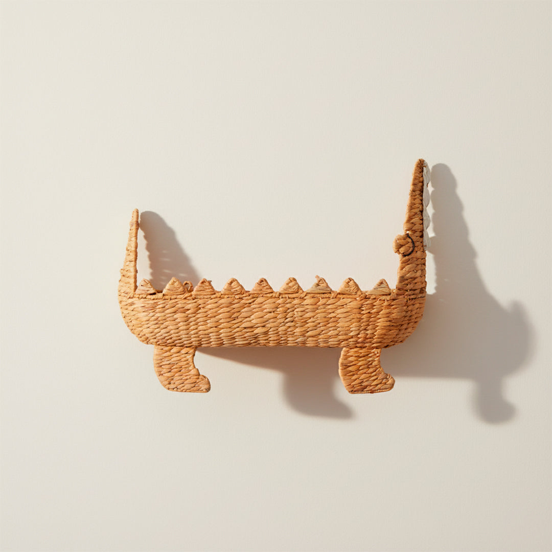 PRATELEIRA EM RATTAN NO FORMATO DE JACARE. UMA CHARMOSA DECORACAO QUE ALEM DE AMBIENTAR ORGANIZA OS OBJETOS FAVORITOS DOS PEQUENOS DE FORMA QUE FIQUE AO ALCANCES DE SUAS MAOS. O RATTAN E UM PRODUTO NATURAL E FABRICADO ARTESANALMENTE E PODE APRESENTAR VARIACOES EM COR, MEDIDAS, VEIOS E TEXTURAS.