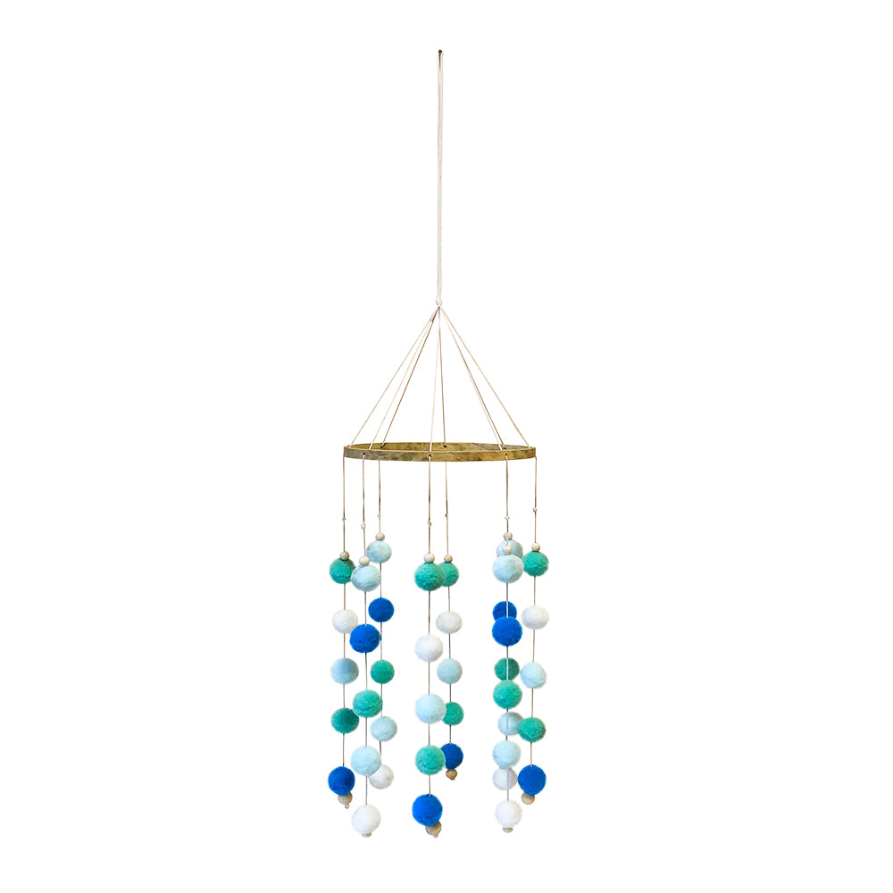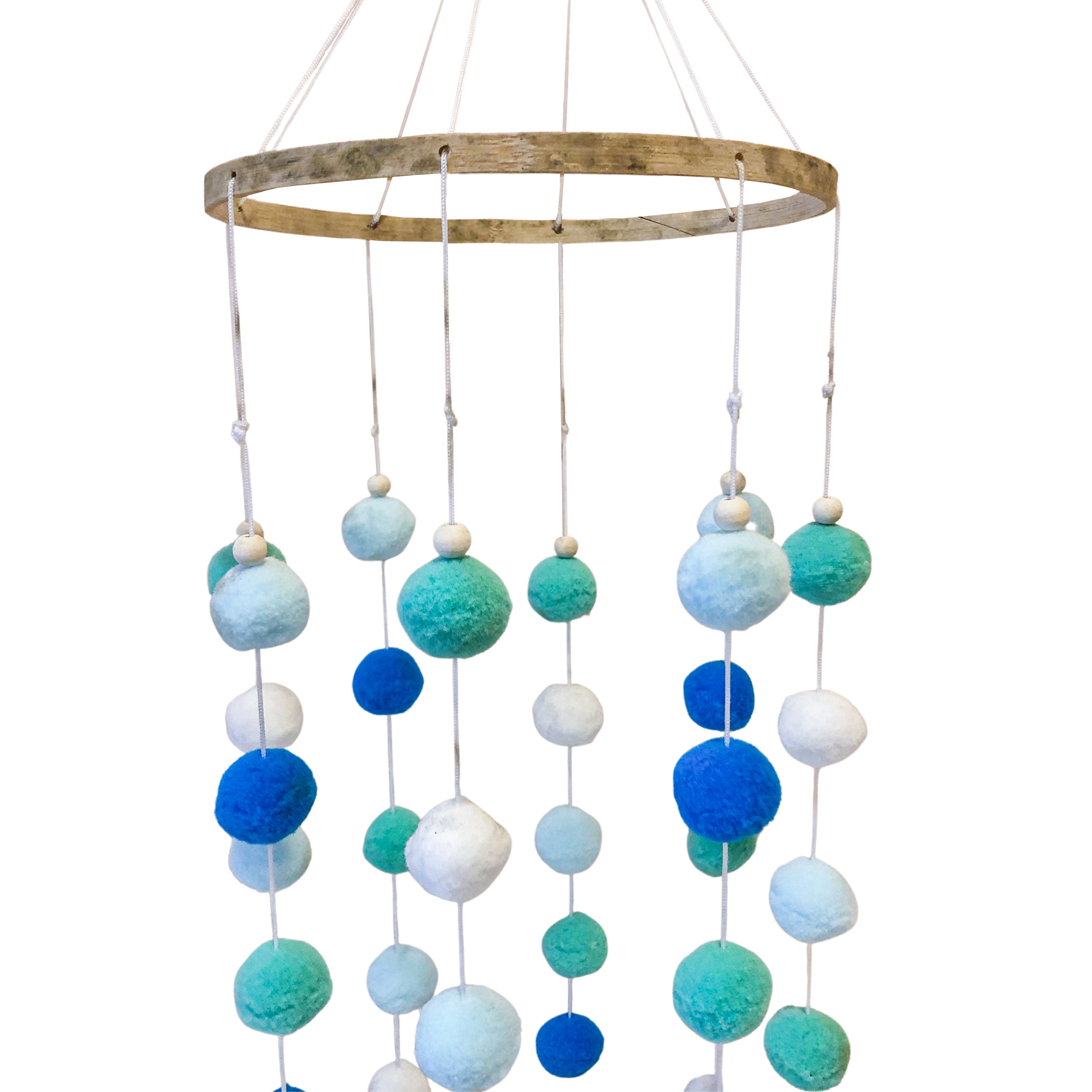MOBILE COM ARO DE BASTIDOR CONFECCIONADO EM MADEIRA COM POMPOMS EM FELTRO COLORIDO. PERFEITO PARA DECORAR CABANINHAS OU PARA COLOCAR SOB O BERCO DIVERTINDO O BEBE E APRESENTANDO PARA ELE NOVAS CORES.