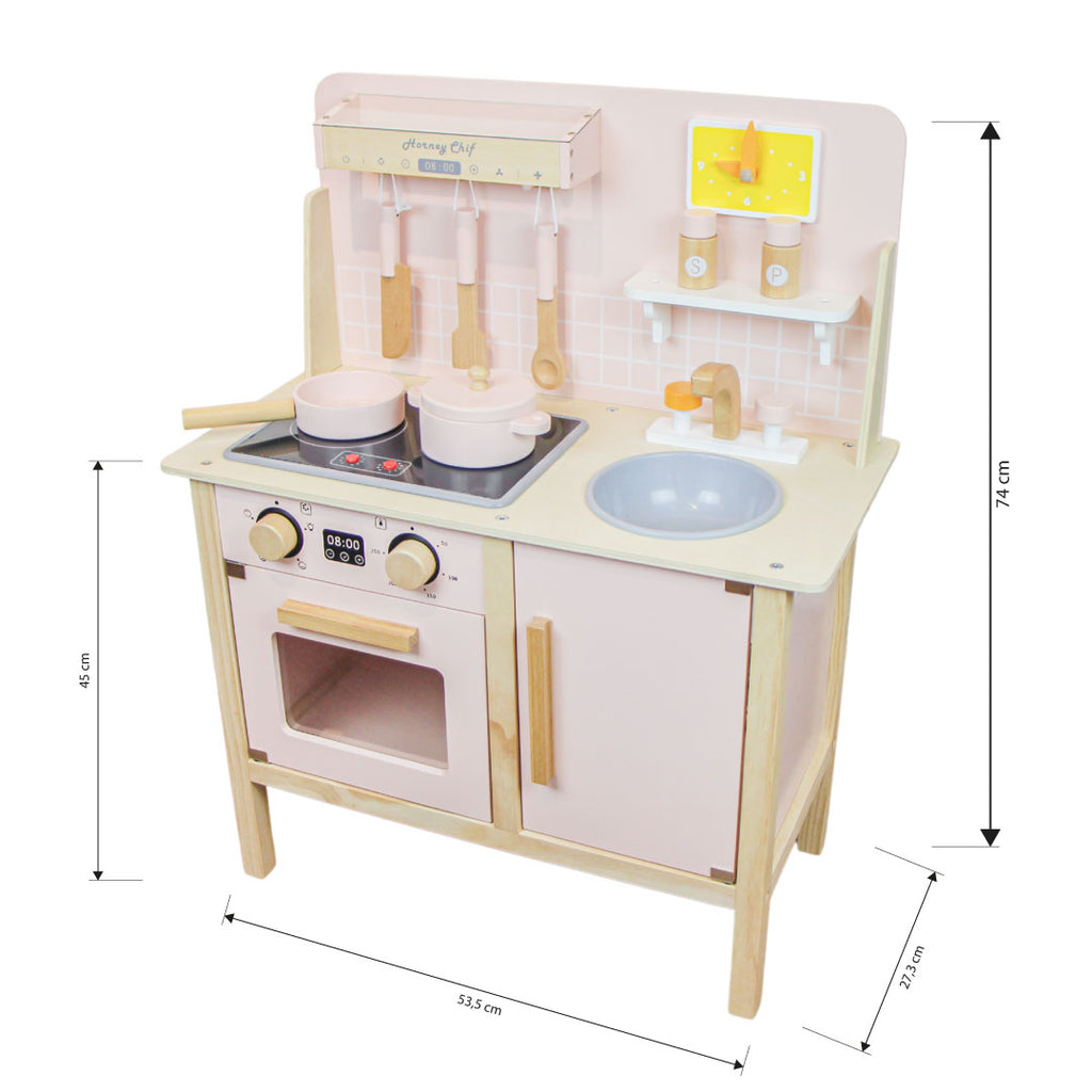 COZINHA INFANTIL DE MADEIRA ROSA COM ACESSORIOS E COOKTOP PARA MENINAS