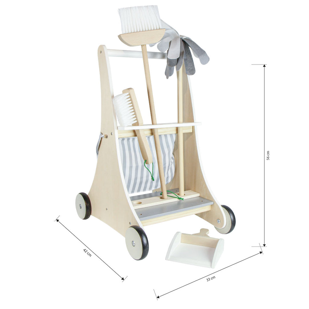 CARRINHO DE LIMPEZA CONFECCIONADO EM MADEIRA MDF COM ACABAMENTO REQUINTADO E PINTADO A MÃO. A LINHA DE BRINQUEDOTECA DA MODALI BABY VEM TRAZENDO AOS PEQUENOS O UNIVERSO FAZ DE CONTA. ONDE ELES VIVENCIAM O COTIDIANO DE FORMA LÚDICA E CRIATIVA. CADA PEÇA FOI DESENHADA COM DETALHES REAIS PARA DEIXAR A BRINCADEIRA MUITO MAIS DIVERTIDA. ACOMPANHA 1 VASSOURA 59 X 13.5 X 3.5 . 1 ESPANADOR 69 X 10 X 3.5 . 1 VASSOURINHA PEQUENA 23 X 4 X 7 . 1 PÁ 4.5 X 13.5 X 18 . RODINHAS 9CM. 1 BOLSO DE TECIDO 22 X 33 X 1