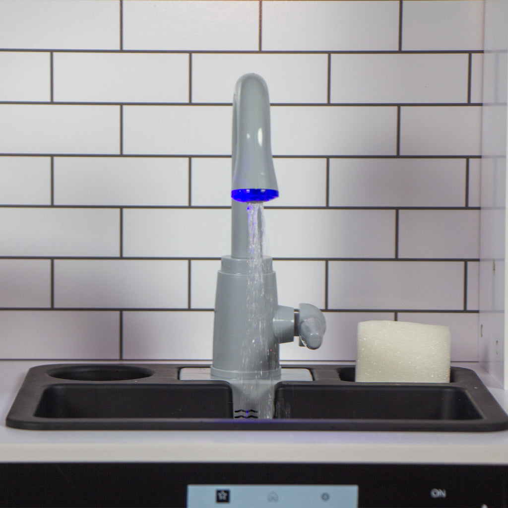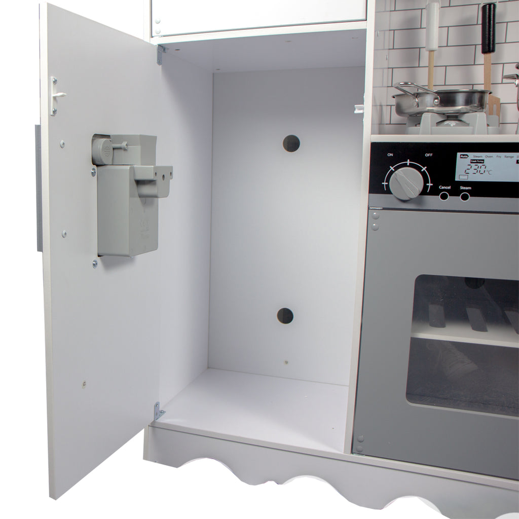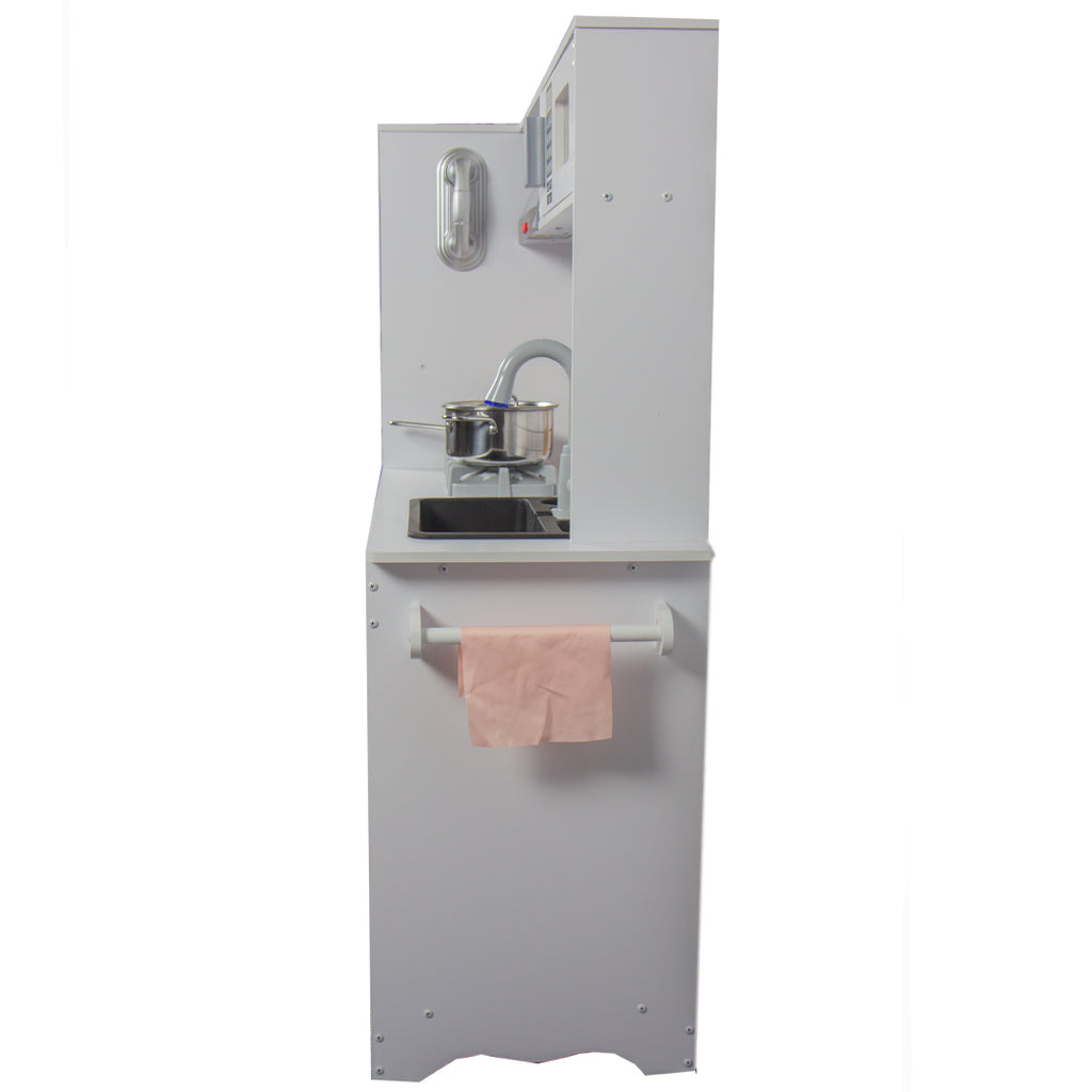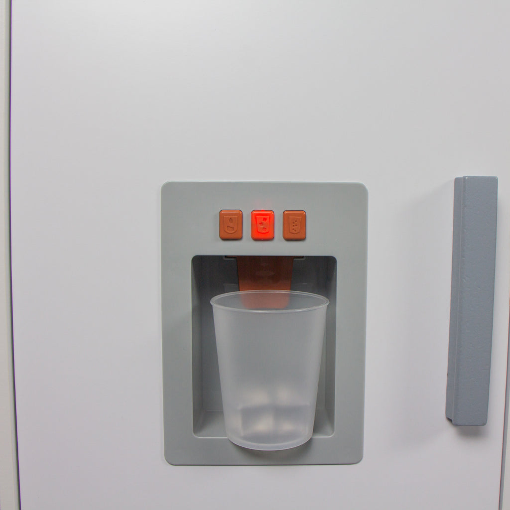 Cozinha americana completa, confeccionada em madeira MDF e melamina. Seu design atual leva para a brinquedoteca uma forma diferente e completa de apreender brincando, como noções de responsabilidade, cuidado, confraternização e socialização entre outros. Muito mais que um brinquedo, nossa cozinha é totalmente interativa, permite que os pequenos mergulhem no mundo da imaginação. Simplesmente completa, inclui dispensador de gelo suspenso com botões sonoros operado por bateria LR44, micro-ondas com som operado por bateria LR44, fogão com som e luz realistas operado por bateria LR44 (3 unidades), exaustor operado por pilha AAA (2 unidades), botões de clique, lava-louças com som operado por bateria LR44 (3 unidades), geladeira embutida, forno, além de um dispenser para a saida de água pela torneira operado por pilha AA (3 unidades) e muito mais. A cozinha também possui panelas e talheres, alem de um toalheiro real e outros detalhes autênticos como torneira e maçanetas. Apesar de seu design super extenso, o conjunto é rápido e fácil de montar com todas as ferragens e instruções incluídas (requer chave de fenda). Reuna as crianças que a brincadeira vai começar, complete a brinquedoteca com toda nossa linha e deixe o cardápio completo para o proxima refeição. Material: madeira; Faixa Etária Indicativa: 3 anos. Para funcionar os botões sonoros nas portinhas a cozinha necessita um total de 2 pilhas AAA e 3 pilhas AA que não acompanham no produto.