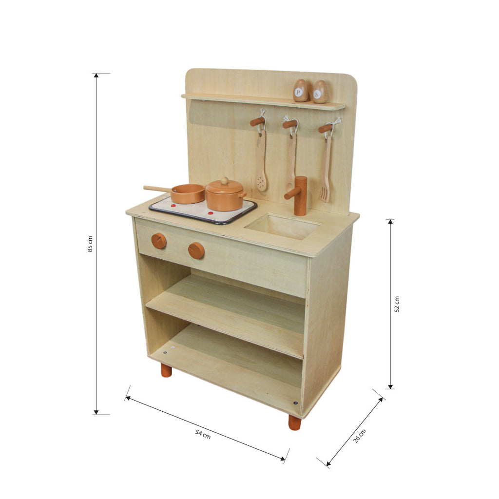 COZINHA RETRO COMPLETA. CONFECCIONADA EM MADEIRA MDF COM ACABAMENTO REQUINTADO E PINTADO A MÃO COM ACESSÓRIOS EM TERRACOTA. ESSE MODELO POSSUE PRATELEIRAS QUE PODEM SER USADAS COMO ESTANTE PARA A BRINQUEDOTECA PARA AUXILIAR NA ORGANIZAÇÃO E COORDENAÇÃO MOTORA.AGORA OS PEQUENOS PODEM PREPARAR DELICIOSAS RECEITAS PARA A FAMILIA E USAR A IMAGINAÇÃO PARA BRINCAR E EXPLORAR A CRIATIVIDADE. O QUE JÁ ERA LINDO FICOU AINDA MELHOR. A COZINHA MODALI BABY GANHOU UM NOVO DESIGN COM INSPIRAÇÕES VINTAGE. O CONCEITO EM MADEIRA VEIO PARA FICAR DANDO AR DE ACONCHEGO SEM DEIXAR DE LADO A BRINCADEIRA. TODOS OS ACESSORIOS SÃO EM MADEIRA, TORNEIRA, PANELINHAS, TALHERES, SAL E PIMENTA. O COOKTOP É UM SUPER DIFERENCIAL, QUE ACENDE E FAZ BARULHINHO DE FOGO. BOTÕES QUE GIRAM . A LINHA DE BRINQUEDOTECA VEM TRAZENDO AOS PEQUENOS O UNIVERSO FAZ DE CONTA. ONDE ELES VIVENCIAM O COTIDIANO DE FORMA LÚDICA E CRIATIVA. CADA PEÇA FOI DESENHADA COM DETALHES REAIS PARA DEIXAR A BRINCADEIRA MUITO MAIS DIVERTIDA. ALÉM DE ESTUMILAR OS SENTIDOS POR SUA TEXTURA. PESOS E SONS. CONTÉM 7 PEÇAS AVULSAS: CAÇAROLA 6.5 X 15.5 X 11.5 : FRIGIDEIRA 4 X 21 X 11.5 : COLHER 16 X 3.5 X 0.5 : ESPATULA VAZADA 16 X 4 X 0.5 : ESCUMADEIRA 16 X 4 X 0.5 : SALEIRO 6 X 3 : PIMENTEIRO 6 X 3 .