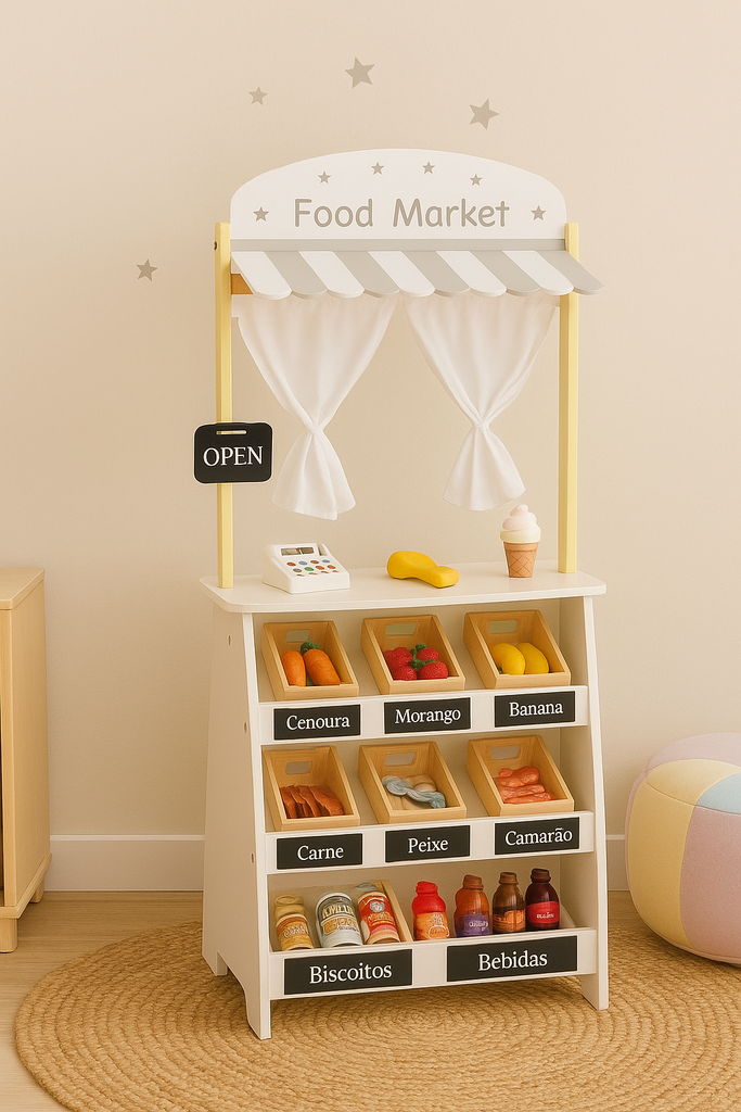 FEIRINHA-MINI MERCADO COM COMIDINHAS E CAIXA REGISTRADORA