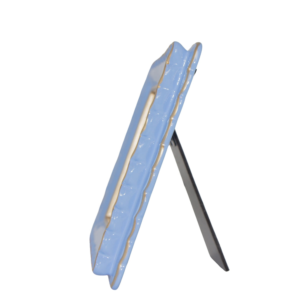 ESTE PORTA RETRATO QUADRADO TRAZ UM DESIGN ENCANTADOR COM UMA BORDA ONDULADA E UMA DELICADO AZUL. TÃO BOM QUANTO VIVER MOMENTOS FELIZES É PODER REGISTRAR CADA UM DELES. IDEAL PARA DEIXAR ESSAS LEMBRANÇAS EM EVIDÊNCIA DA MELHOR FORMA POSSÍVEL, ALÉM DE DECORAR O AMBIENTE COM MUITO CHARME E ELEGÂNCIA. FOTO 10X10