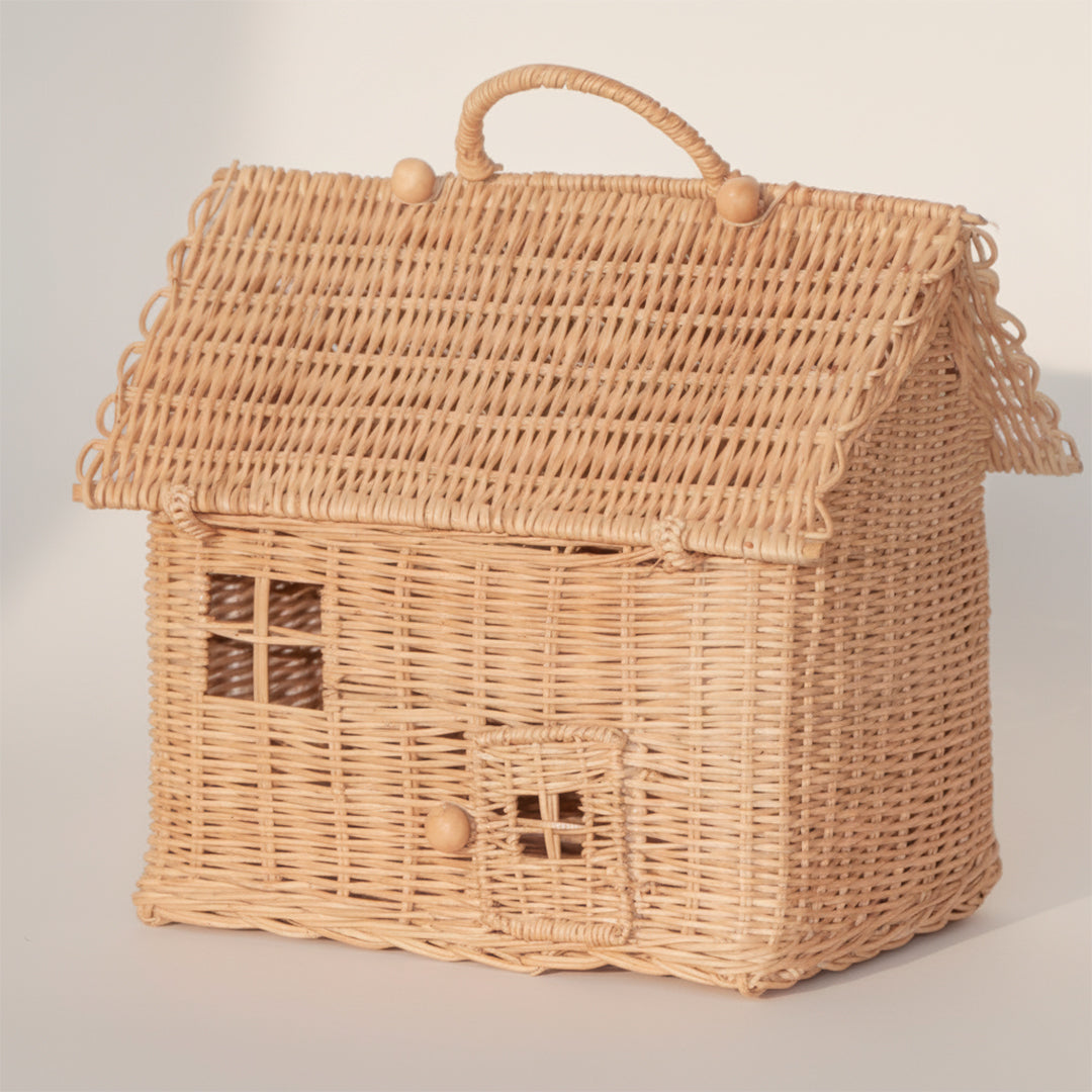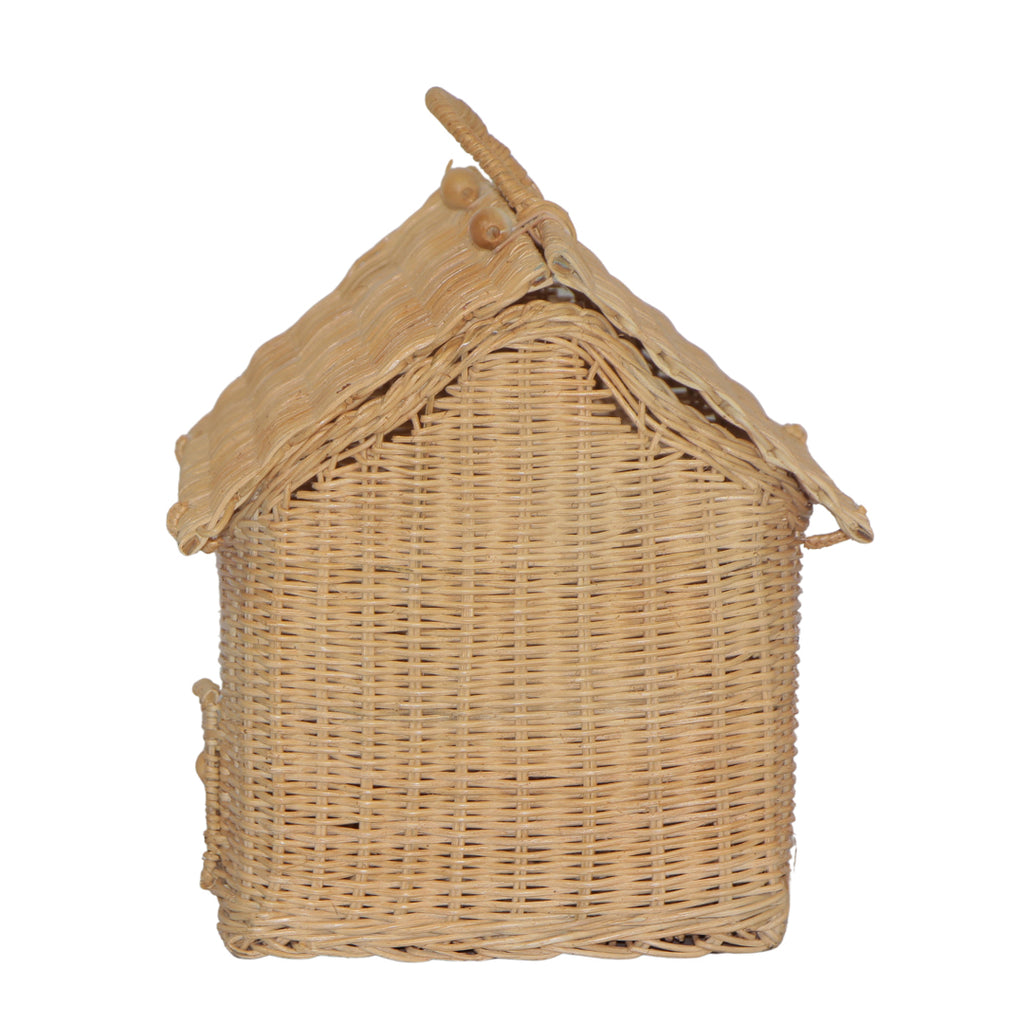 CESTO ORGANIZADOR CONFECCIONADO EM RATTANN NO FORMATO DE CASINHA COM ALCA E PORTINHA. PERFEITO PARA DECORAR O QUARTINHO, GUARDAR FRALDAS, GUARDAR BRINQUEDOS PEQUENOS E MUITO MAIS. O RATTAN E UM PRODUTO NATURAL E FABRICADO ARTESANALMENTE E PODE APRESENTAR VARIACOES EM COR, MEDIDAS, VEIOS E TEXTURAS.