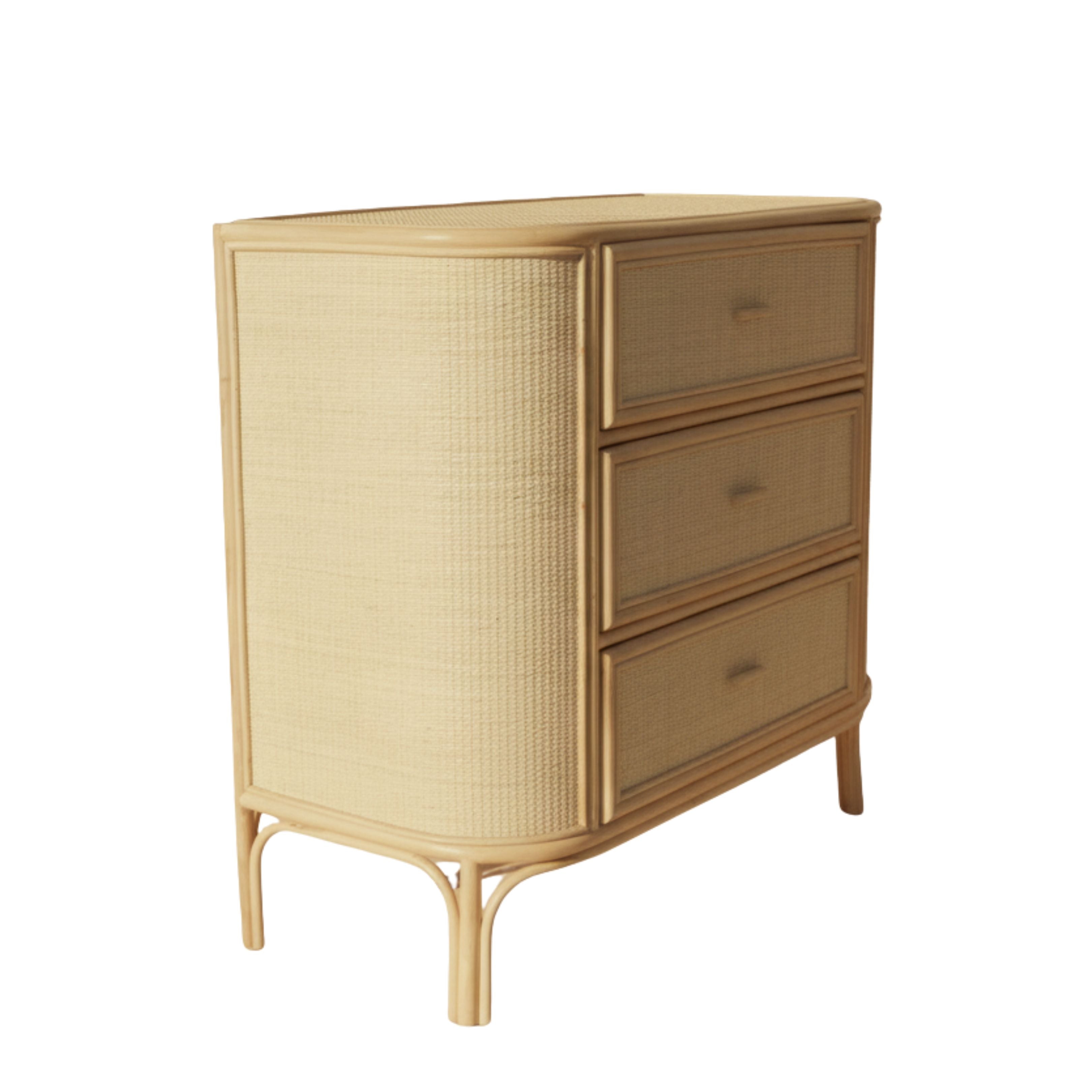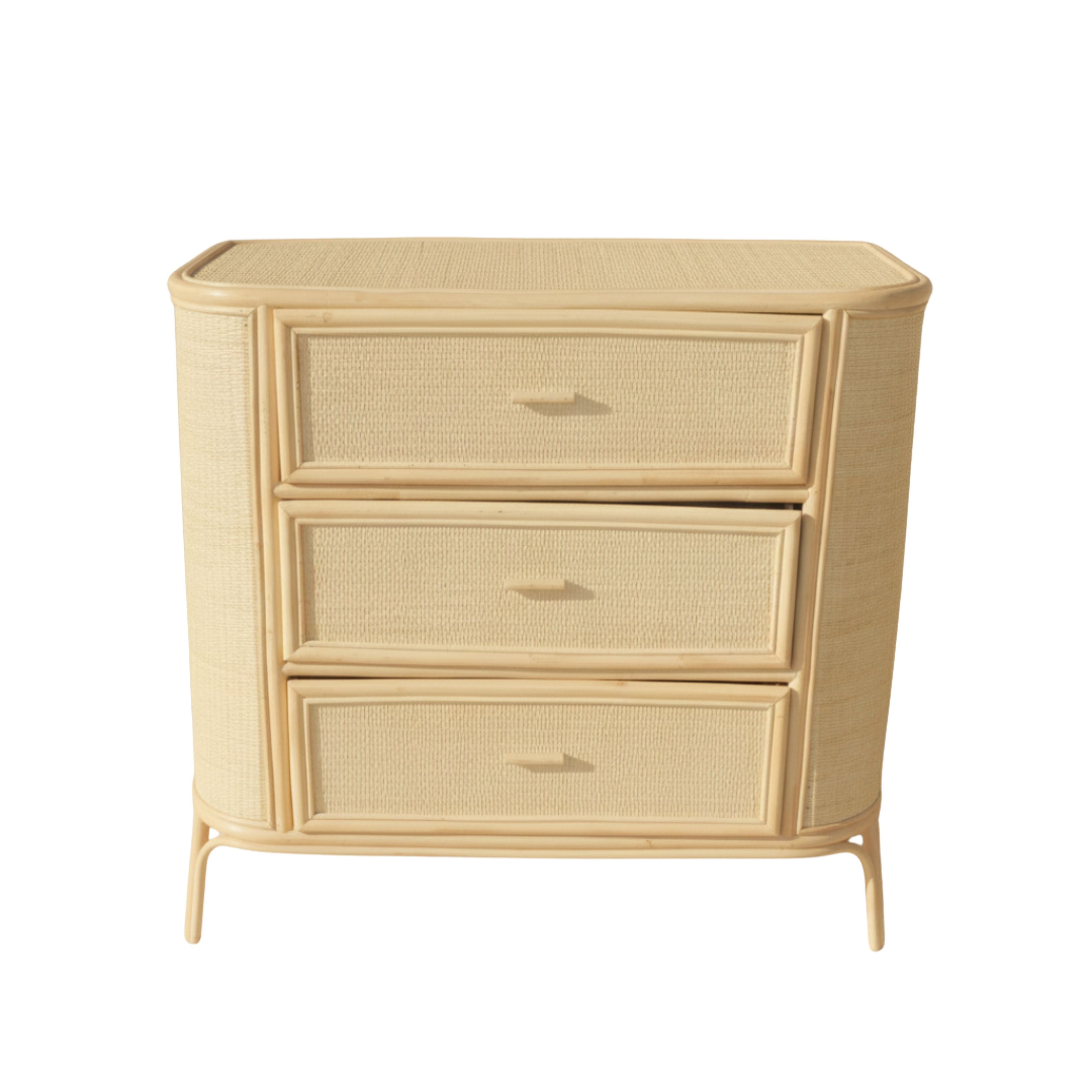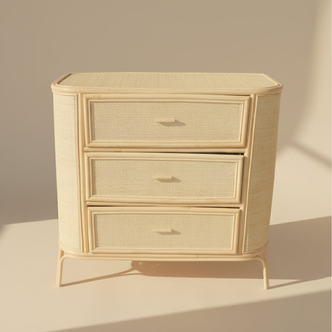 ORGANIZE SEU ESPACO E CRIE UM AMBIENTE DESLUMBRANTE COM ESSA COMODA EM RATTAN. COM 3 GAVETAS OFERECE EXCELENTE ESPACO DE ARMAZENAMENTO, ENQUANTO O AMPLO TAMPO FICA LIVRE PARA DECORACAO, TROCADOR E KIT DE HIGIENE. O RATTAN E UM PRODUTO NATURAL E FABRICADO ARTESANALMENTE E PODE APRESENTAR VARIACOES EM COR, MEDIDAS, VEIOS E TEXTURAS.