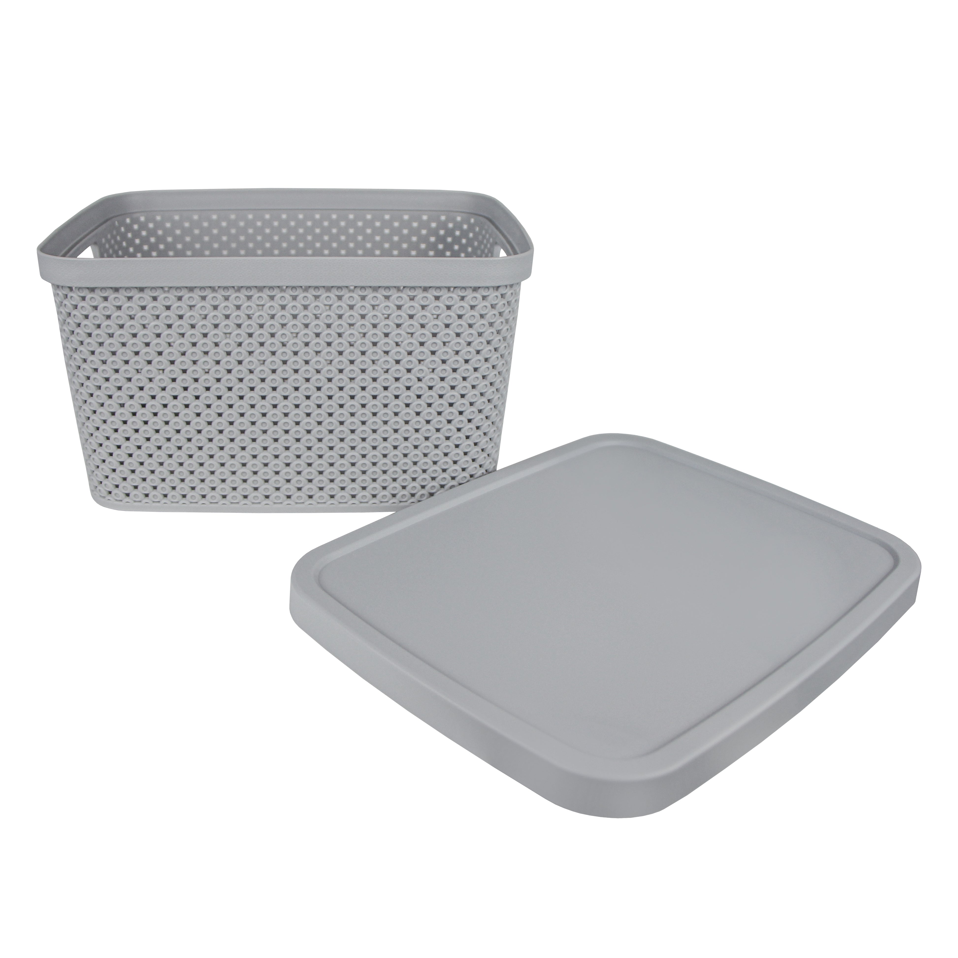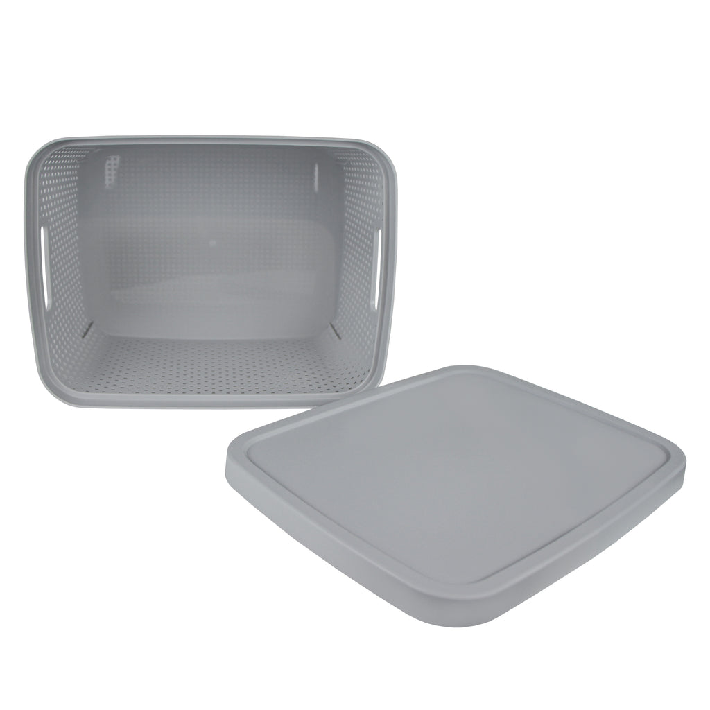 CESTO ORGANIZADOR COM TAMPA CINZA M