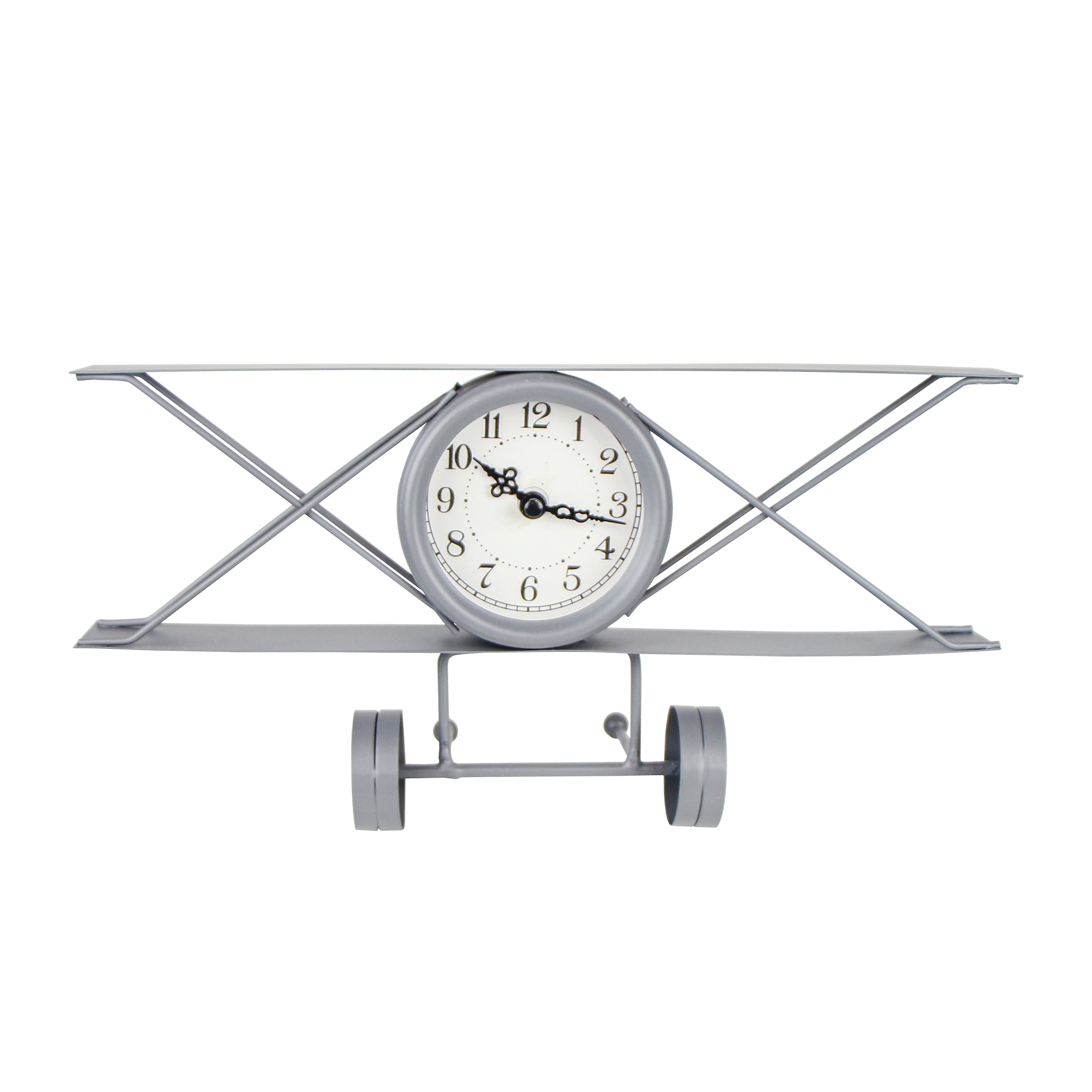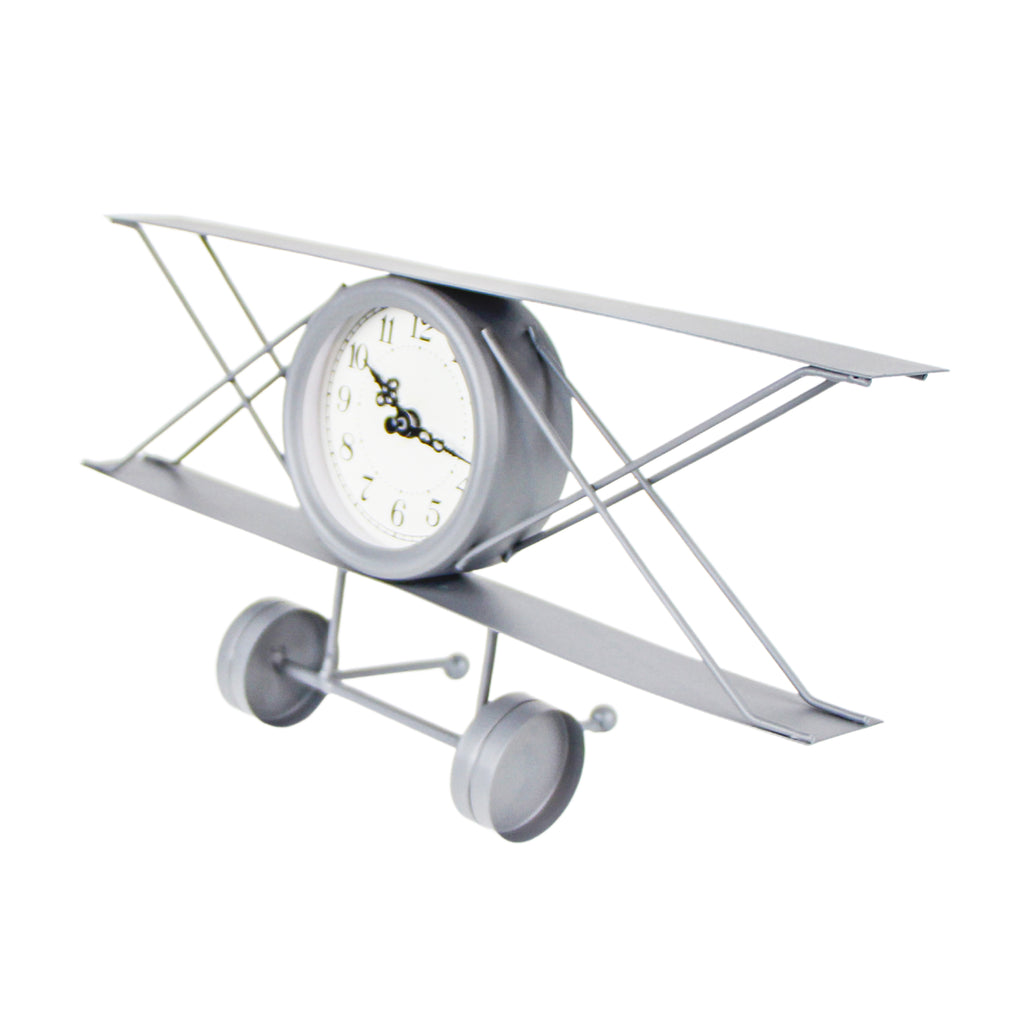 RELÓGIO DE MESA EM FORMATO DE AVIAO NA COR CINZA. PERFEITO PARA COMBINAR COM O TEMA AERONAUTICO E DEIXAR O QUARTO AINDA MAIS LINDO E MODERNO, ALEM DE AUXILIAR AS MAMAES NA HORA DA SONECA. MEDIDA TOTAL DO PRODUTO : A: 16,5 ; L: 30 ; C: 8,5